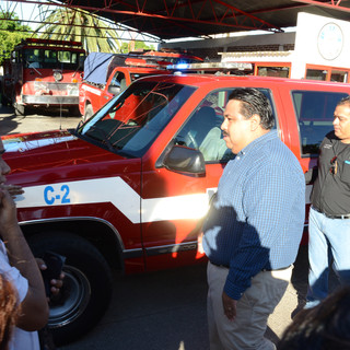 Cuautla, Mor.- Este miércoles el alcalde Raúl Tadeo Nava, acompañado de miembros del Cabildo en un acto de transparencia, realizó la entrega de un vehículo Chevrolet Suburban así como de uniformes para el Heroico Cuerpo de Bomberos, producto de la gestión que efectuó en el mes de Septiembre del año pasado, con la ciudad de Riverside California, a través del Hermanamiento de Ciudades Hermanas.